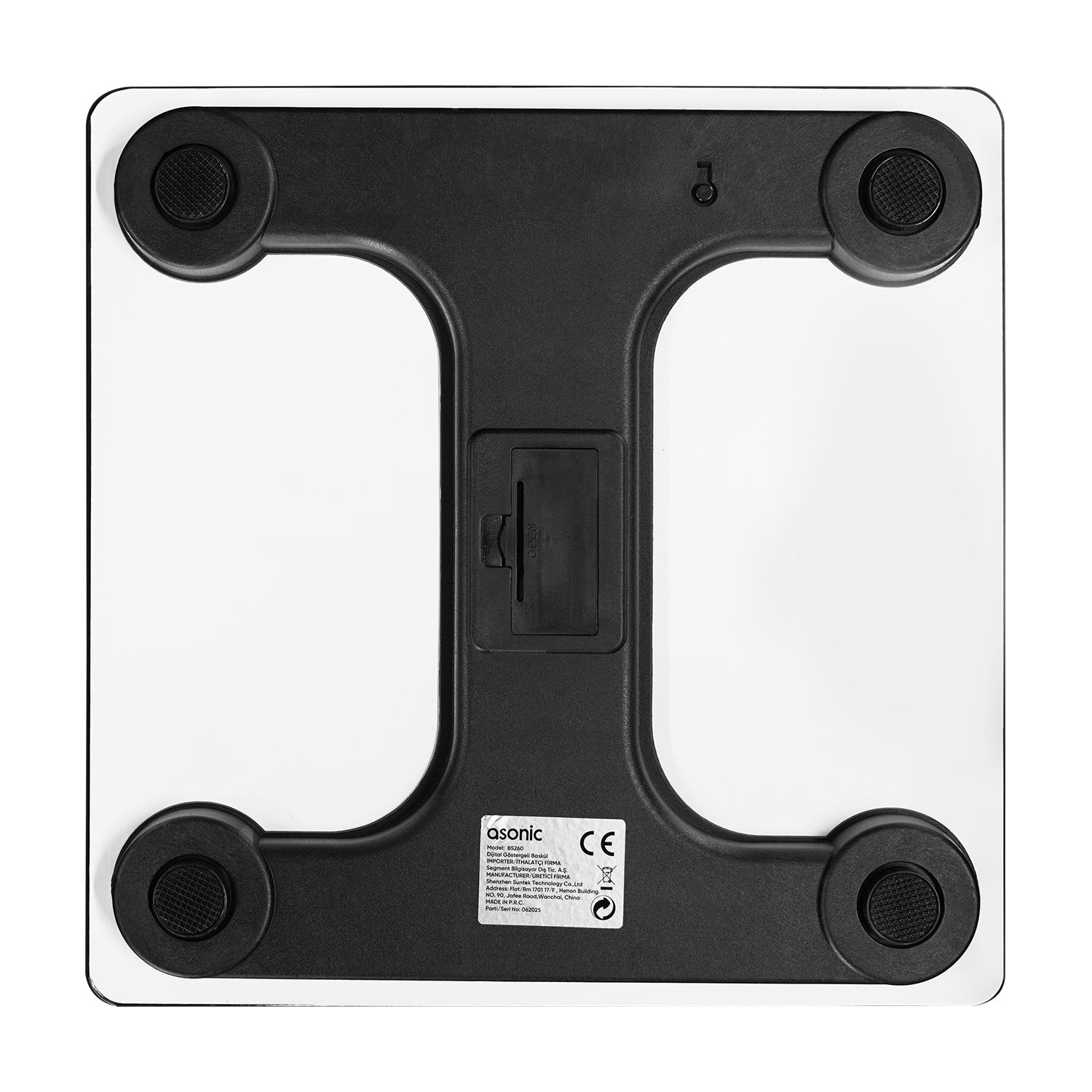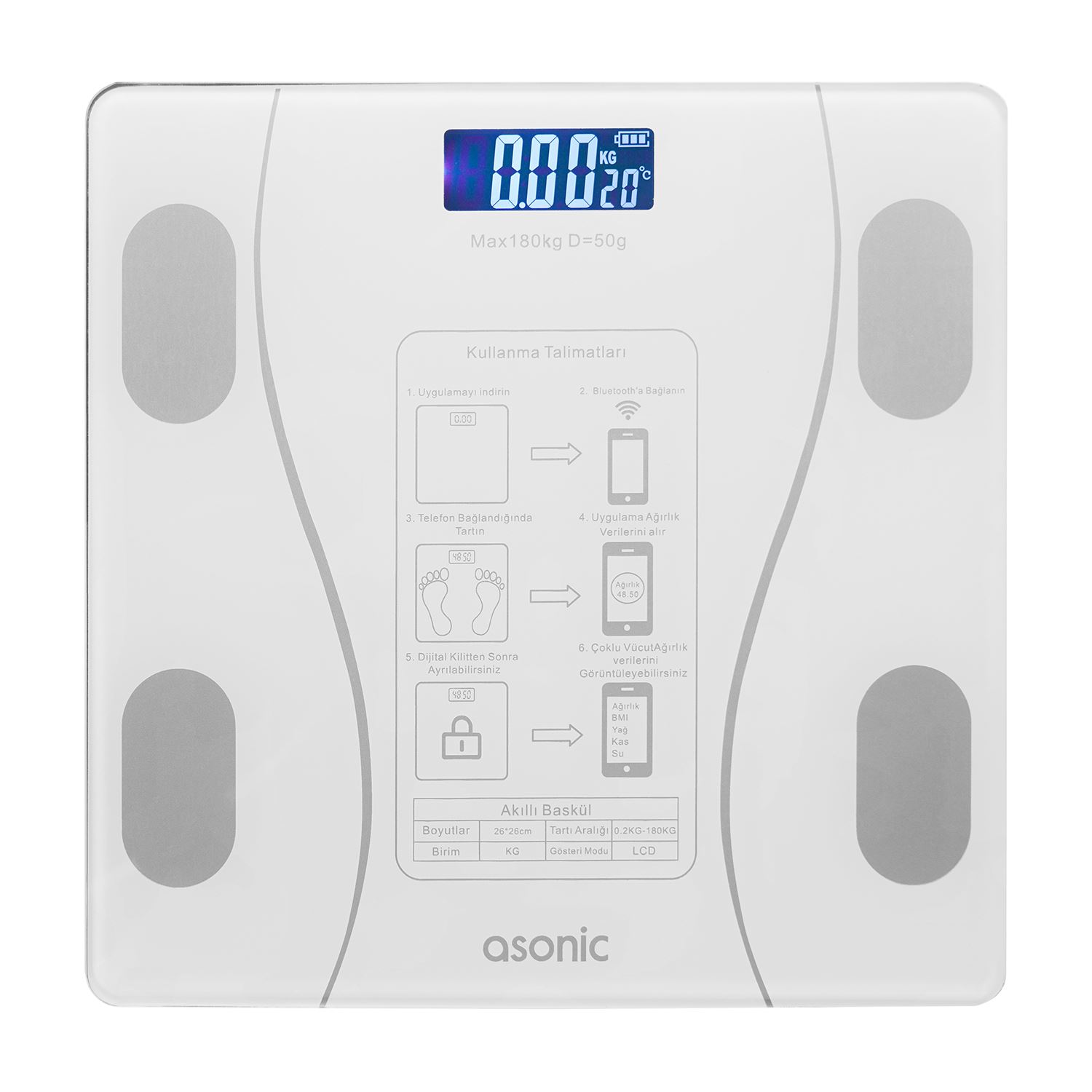 ASONIC BS260, Bluetooth bağlantı özelliği sayesinde kilo ölçümlerinizi mobil uygulama üzerinden takip etmenizi sağlar. Şık temperli cam tasarımı, LCD dijital ekranı ve 180 kg’a kadar ölçüm kapasitesiyle ev kullanımı için idealdir.